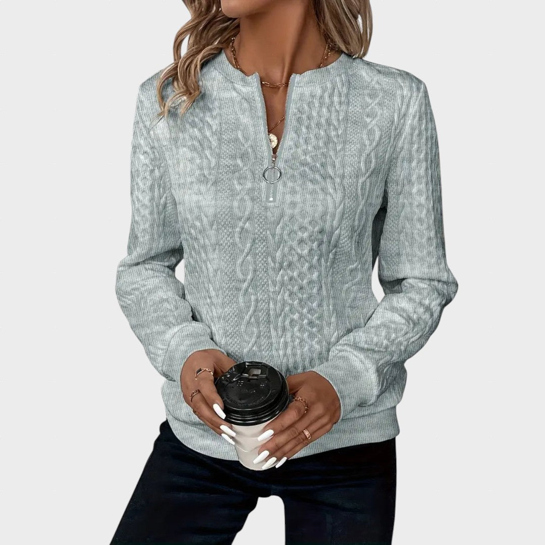 Amalie - Moteriškas megztinis su užtrauktuku ir pynėmis