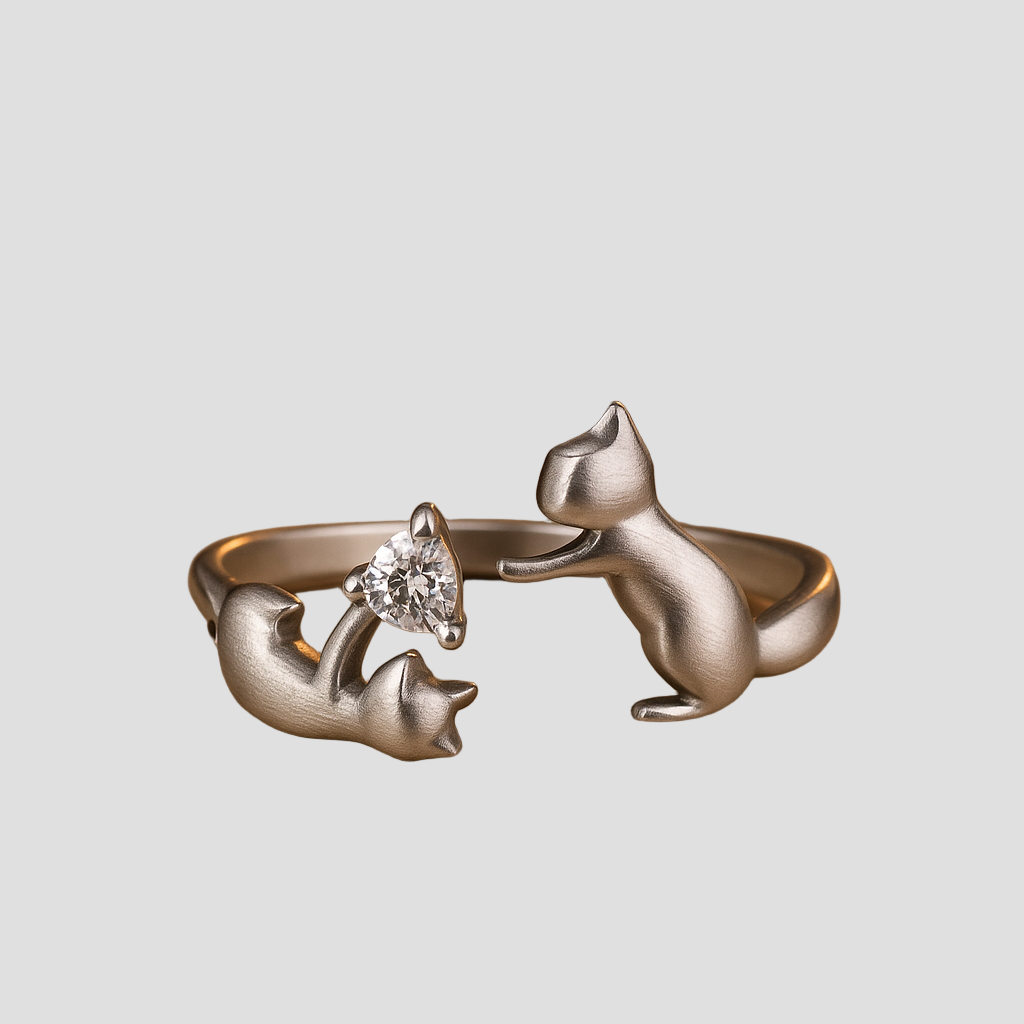 Pagamintas iš tikro 925 sidabro, šis atviras žiedas su žaismingu katės ir lapės motyvu puikiai tinka tiek gyvūnų mylėtojams, tiek aksesuarų entuziastams. Reguliuojamas dizainas užtikrina individualų pritaikymą, todėl jis tinka daugumai pirštų dydžių.