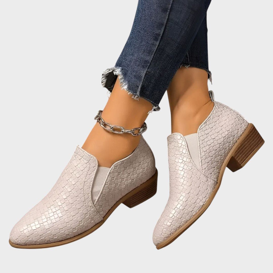 Šie batai – tai rafinuoto dizaino ir praktiškumo derinys, sukurtas miesto ritmu gyvenančiai moteriai. Subtili pynimo tekstūra, žemas kulnas ir preciziškai suformuota forma suteikia balansą tarp komforto ir estetikos. Tai avalynė, kuri sustiprina kiekvieną žingsnį – stilingai, patikimai ir be kompromisų.