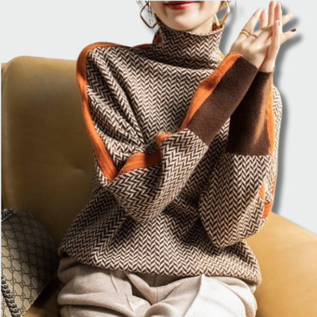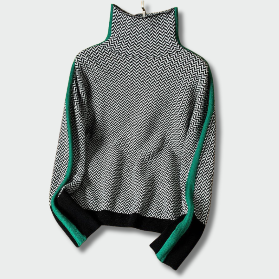 Simona™ – Kontrastingų Juostų Golfo Megztinis