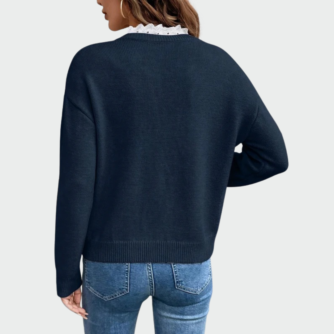 Yara™ – Megztinis su nėrinių apdaila ir V formos iškirpte